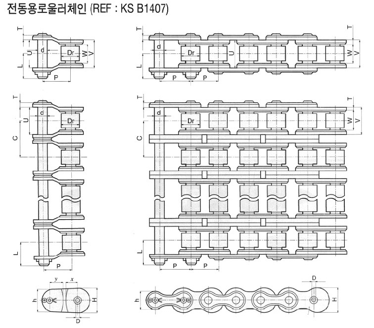 - 체인 구동부가 아랫측일경우에는 상부의 체인에서 처짐량을 줄이기 위하여 축간거리를 키우든지 체인길이를 조정하여 주십시오.