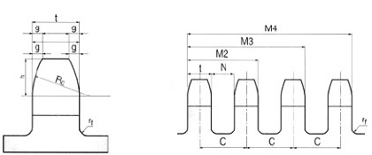 | g | h | Rc | 1열 | 2, 3열 | 4열 | 2열이상 | N | M2 | M3 | M4 | M5 | N | |||