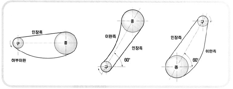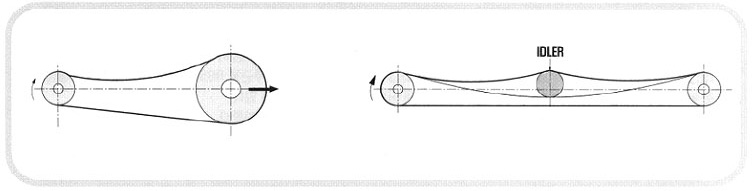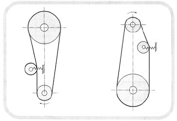 - 수직 배치인 경우, 특히 하부축이 구동축인 경우에도 인장조정풀리를 설치하여 주십시오.